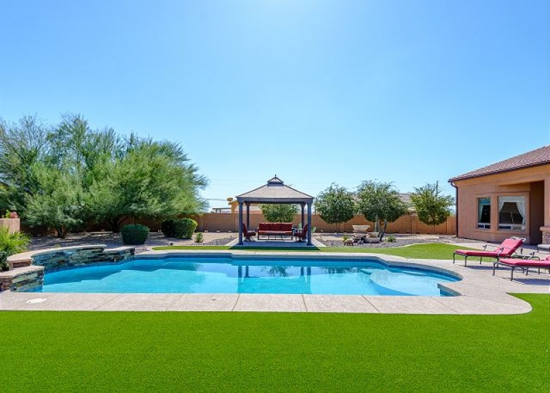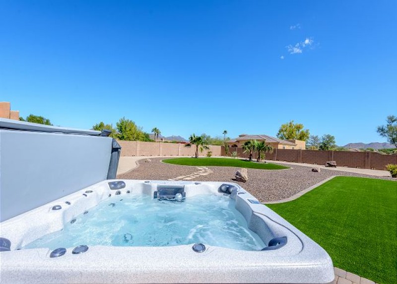 4 bedroom, 2.5 baths LARGE single family home in North Phoenix. Single story- No Stairs. PRIVACY! Large lot; sitting at over an acre! Sparkling *HEATED pool with waterfall and hot tub. Built in BBQ Island/bar/fridge outside. 2 King beds, 2 Twin Beds and a Queen bed provide comfortable and private areas of rest. The master offers a King bed w/ TV, large attached bath and huge walk-in closet. The 2nd bedroom has a King bed and TV. The 3rd bedroom has 2 twin beds and a TV, and the 4th bedroom has a queen bed. An ADDITIONAL pull-out couch in the living room can accommodate 9-10 comfortably! A Pack n' Play is also available for use upon request.