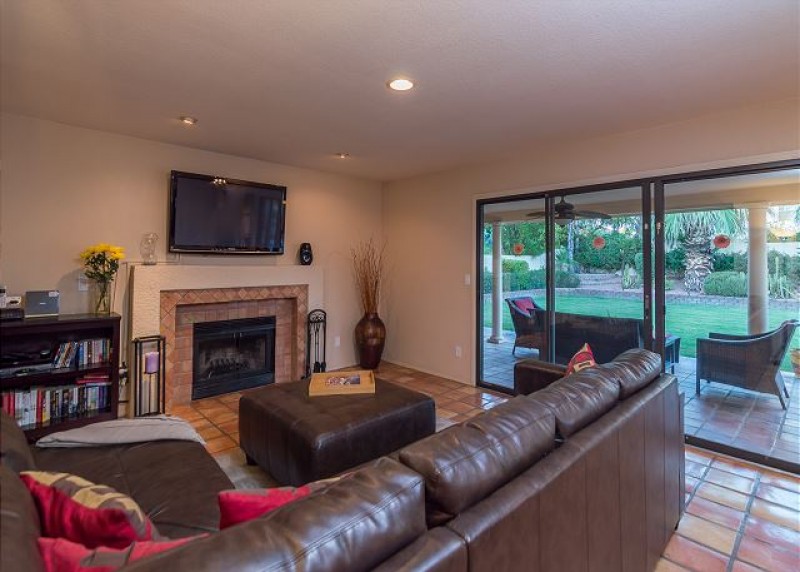 Plenty of indoor and outdoor entertaining space include a family room with large flat screen TV open to the fully stocked kitchen. A separate living room offers plenty of seating and additional flat screen television and DVD player to enjoy pre-dinner cocktails, which opens to the formal dining that can seat 10 comfortably. The glass sliding doors open to the large outdoor covered patio with plenty of seating to relax. Enjoy the stainless steel BBQ and built-in wet bar with full size fridge. A flat screen TV hangs above the wet bar to round out the outdoor experience. Turn on the misting system and the 3 ceiling fans which cools the patio a good 10 degrees or so. The desert in the winter cools off in the evening, so use the outdoor patio heater to still enjoy the desert sky. Perfect for a relaxing get-away, golf trip or your next family reunion! The patio opens to a large grassy area for play. The private pool is entered through a child-safe view fence. This deep diving/lap pool can be enjoyed by all.*** An attached spa is perfect for those chilly desert evenings.*** You will also find plenty of comfortable lounge chairs to sun-bathe, along with an outdoor dining table. Extras such as board games and books will keep you entertained for days.
