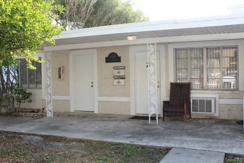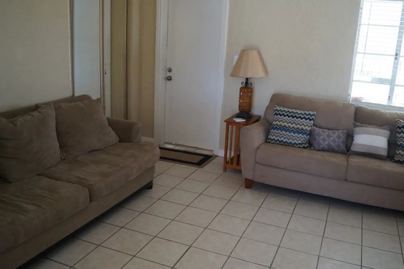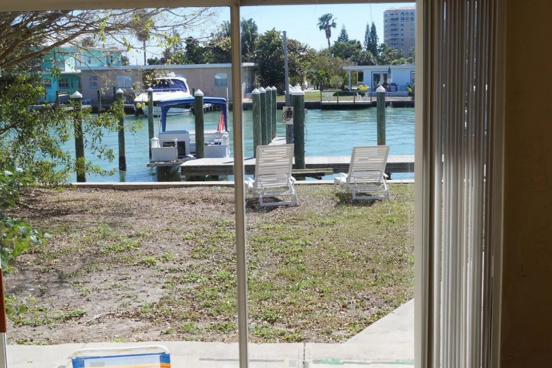 Great waterfront efficiency cottage. (No Bedroom) Queen sofa sleeper in living room and love seat sofa sleeper (single) in sitting room. Walk to everything on Clearwater Beach, pets welcome with a 75.00 fee for small dogs and 100.00 for large dogs. We have a 4 night minimum on all Holidays.