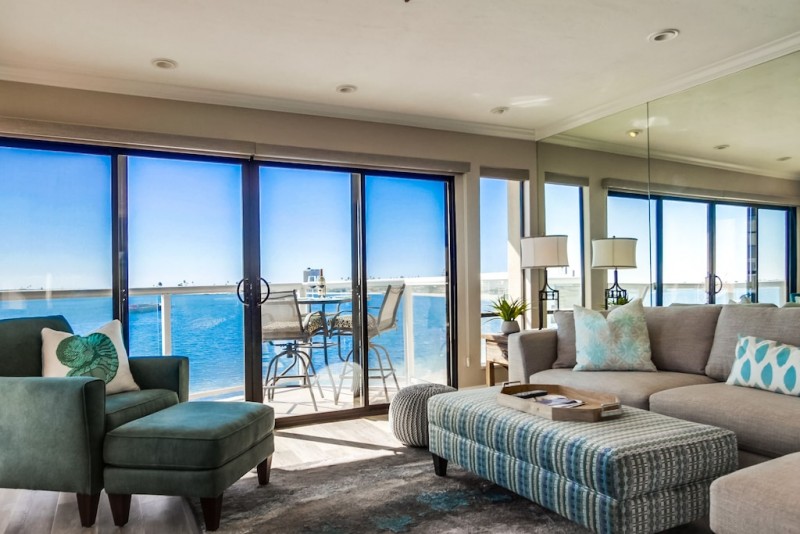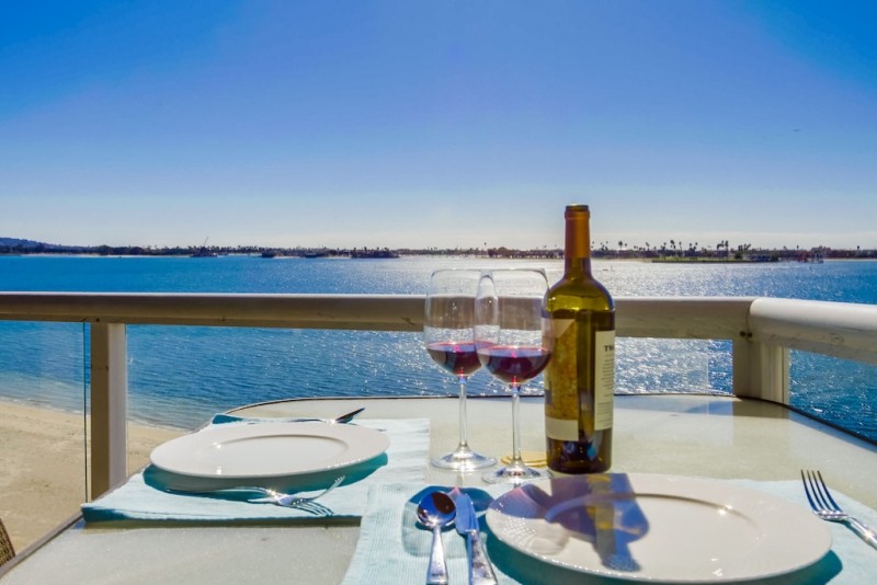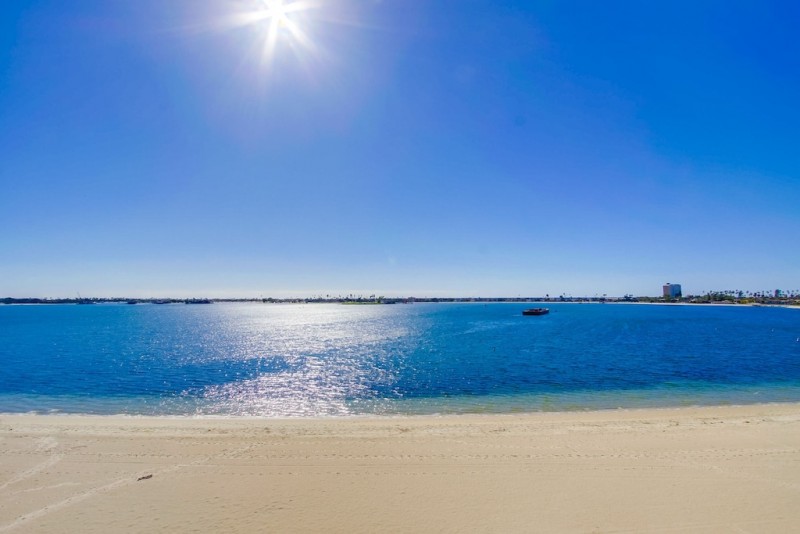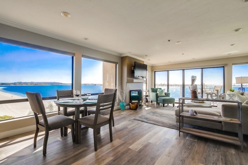 Spectacular extra large corner penthouse condo with amazing views to the North, West, and South right on the beach of Sail Bay. Wake up to the stellar view of the beach and bay. Enjoy your coffee on your private balcony as you watch the boardwalk below come alive with people riding bikes, skating, jogging, and just strolling at leisure and outrigger canoes on the bay. In the afternoon the sailboats and catamarans come out. Take a walk or ride our two provided beach cruiser bikes around the bay and, if you like, cross over to Mission Beach with its wide boardwalk to watch the surfers or catch a glimpse of the green flash at sunset. A perfect place for you to relax and enjoy the best of what San Diego has to offer.