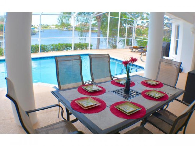 Welcome to Top Florida's Villa Stardusk! Situated in the perfect vacation location in SW Cape Coral, near Cape Harbor's Rum Runner and other area attractions! This sparkling Villa is just another perfect example of the incredible value that Top Florida offers with a fully furnished Vacation Villa. Enjoy the clear, warm water of the pool, go boating, or just enjoy the expansive views over the intersecting canals. The contemporary interiors are timeless and classy. For your convenience, there is free Wi-Fi (WLan).