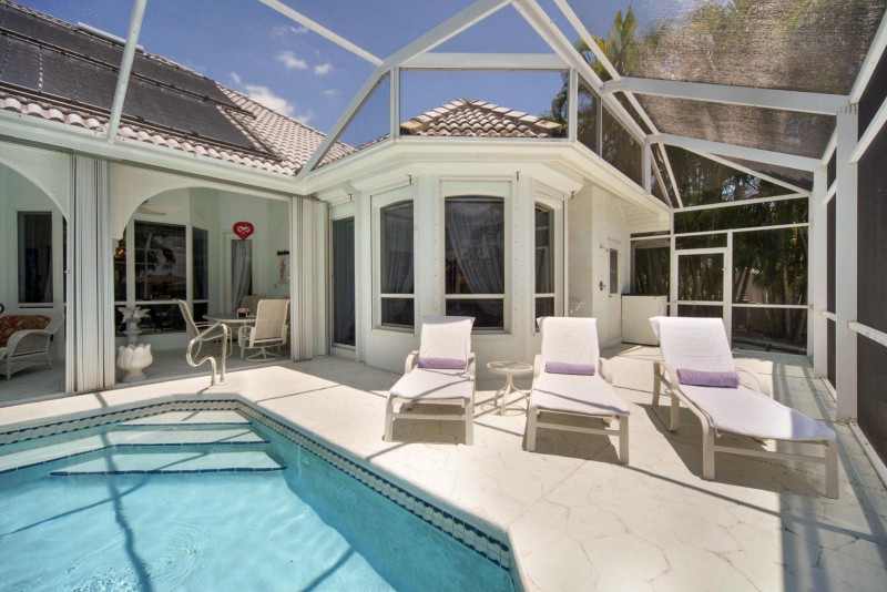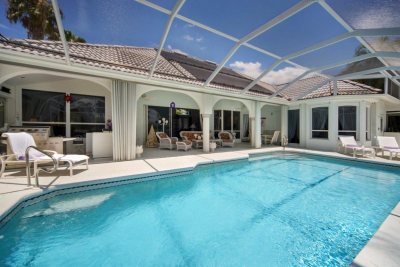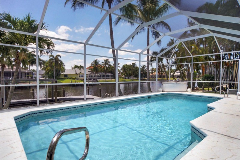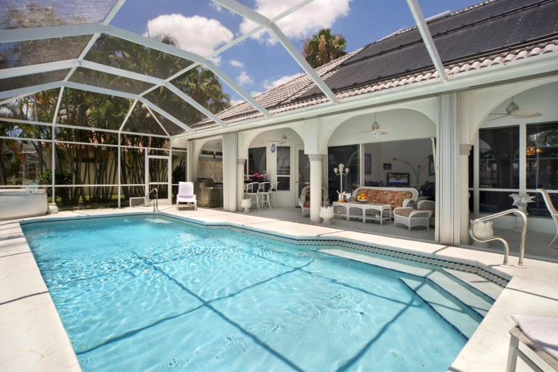 From the pool terrace you have a wonderful view of the quiet canal. A dining table, as well as a cozy lounge set, and deck chairs invite you to relax and enjoy the Florida sun.