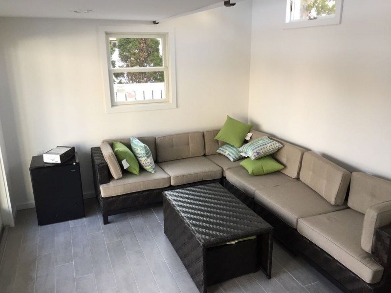 This home features a heated in-ground pool 15x27 foot with a pool cabana that includes a loft. The main house has hardwood floors throughout, quartz kitchen countertops and stainless steel appliances. This home has central air conditioning and full size washer and dryer. The front porch includes comfortable seating for six along with two adirondack chairs. The large backyard patio includes six seats and picnic table, four lounge chairs, three umbrellas and two chairs. In addition to the large pool and cabana, there is a propane tank gas BBQ grill and outdoor shower.