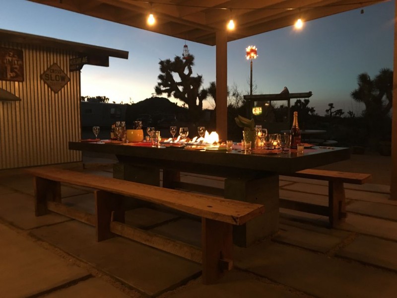 The Atomic Trailer Ranch is a vacation rental located just outside Joshua Tree National Park. The Ranch sits on 5 private acres and is surrounded by boulder strewn mountains and pristine mojave desert. Star filled nights by the camp fire or a moon lit evening stroll is at your disposal. We offer accommodations for larger groups up to 15 and you can pitch a tent if you choose to have more people.