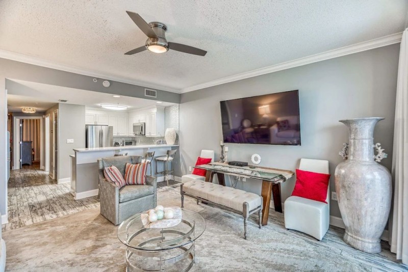 With so much to do, you may not spend much time in your room! But when you do, Boardwalk Beach Resort Condominium 1607 will impress your friends and family! The entire condo has been updated with high-end, contemporary decor! This one bedroom, one bathroom hideaway sleeps up to six and features a comfy queen bed in the master bedroom, fun, built-in bunks in the hallway plus a queen sleeper sofa in the spacious living room. Best of all, a large, modern kitchen with on-trend tile enables you to save money for fun by preparing your own meals.