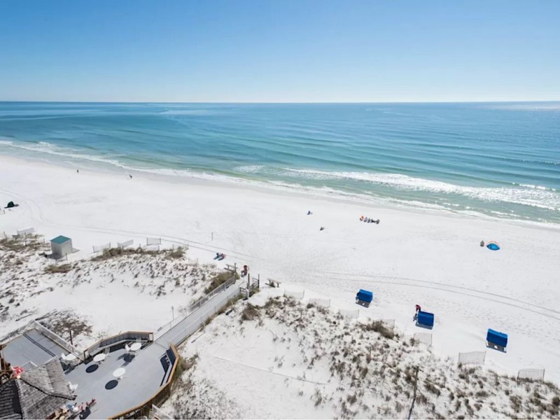 Updated 10th floor condo sits right on beach! Gorgeous full view of the Gulf where you can see dolphins from our balcony. Beautiful updated beach decor.