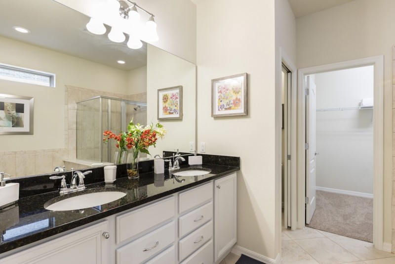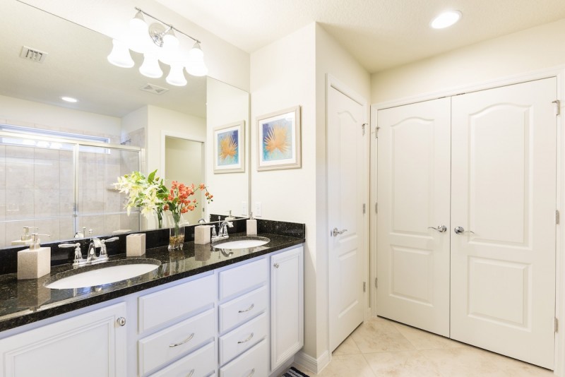 After a long day at the park, kick back and relax and catch a movie on the large LED TV in the den. The home also has a PlayStation 4 games console perfect for entertaining the kids. There are two more master king suites located on the second floor both complete with en-suite baths and large flat screen TVs. The fourth and fifth rooms are also located on the second floor. One is complete with two twin size beds, and the other with full size/twin bunk bed.