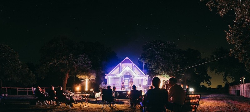 Relax on retro gliding loveseats and spring chairs in the shade of one-hundred-plus-year-old oak trees as your children play and your pets run free in the large fenced yard and wooded pasture with huge rock boulders. Grill some steaks or roast hotdogs on the large woodburning firepit or Charcoal BBQ grills.