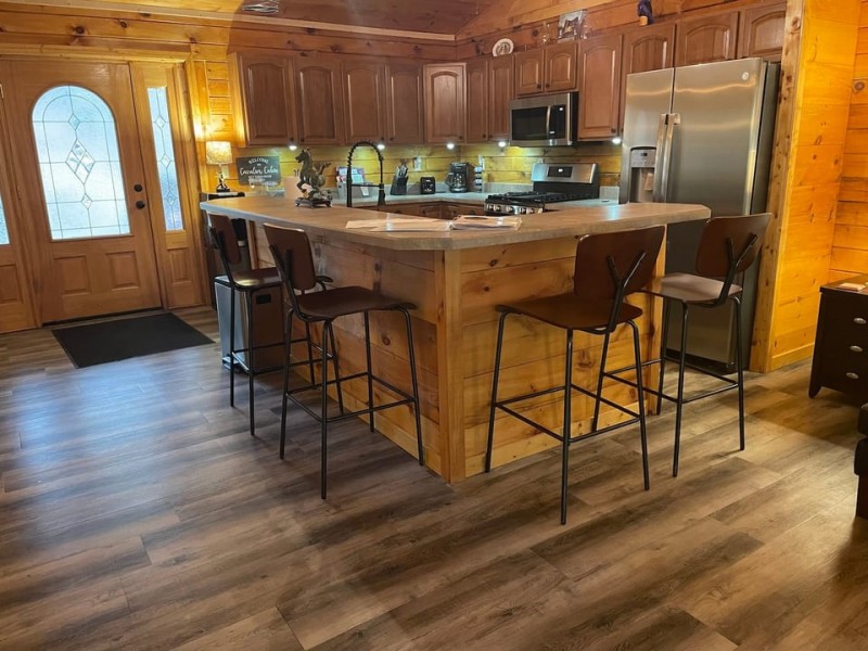 The Cavalier Cabin is a luxurious cabin nestled in the woods of Hocking Hills while still remaining close to Logan restaurants, shops, and local attractions. The cabin boasts 2 comfortable bedrooms, 2 full bathrooms, large living spaces, and a magnificent kitchen.