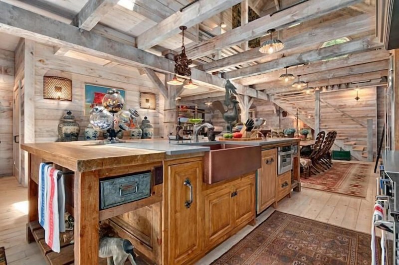 This home has a bright interior of white washed rough sawn timber and vaulted ceiling; 4 king bedrooms each with en-suite bath, flat panel TV hidden behind decorative handcrafted cabinets.