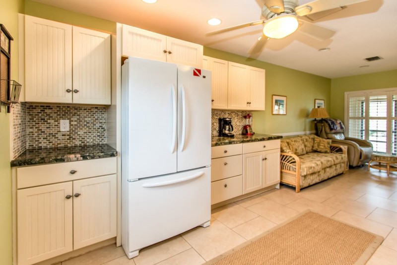 This condominium at The Reef in Marathon, Middle Keys is a true resort setting with a “home away from home” feel. This updated unit is fresh, and comfortable. It features 3 bedrooms and 2.5 bathrooms or 2 bedrooms and 1.5 bathrooms. The two bedroom side features an open kitchen/living/dining floor plan. The one bedroom is set up like an efficiency with a small kitchenette and even a small dining table. Bedding consist of 1 king, 1 queen on the two bedroom side and then a 1 queen on the one bedroom side. The onsite pool is surrounded by comfortable chairs to lounge in and all guests are welcome to complimentary use of onsite bikes, kayaks, canoes and paddle boats for exploring. Plus there are tennis courts, laundry facility, shuffleboard, ping pong, and BBQ grills onsite to grill some freshly caught fish.