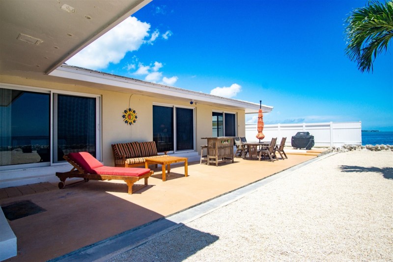Boasting stunning floor-to-ceiling ocean views in every room, this newly remodeled 3BR/2.5BA home promises a delightful oceanfront stay in the Florida Keys. A large patio provides ample seating and covered alfresco dining, while a private yard offers instant access to the clear blue waters.