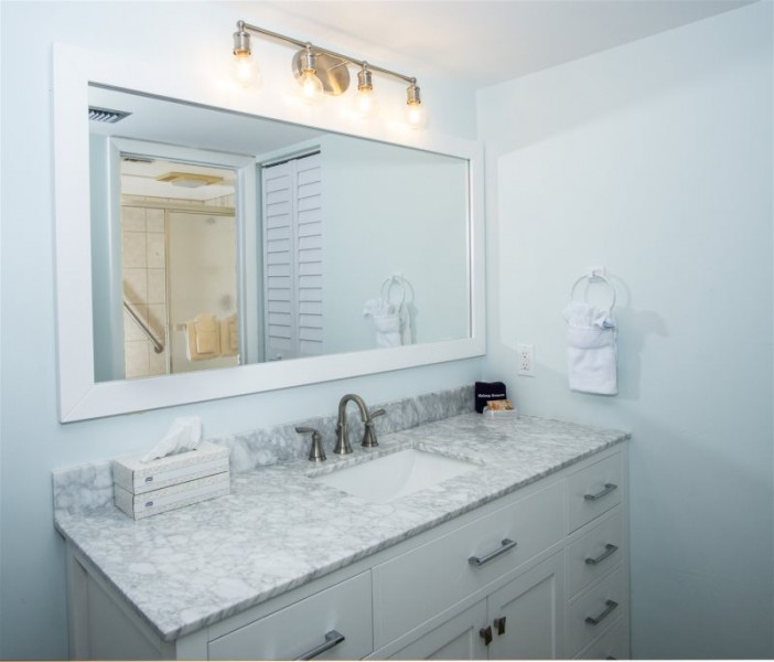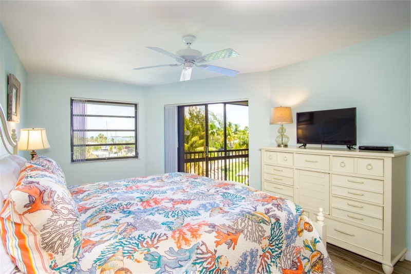 Marathon Key Beach Club units are 2 bedroom 2 bathroom rentals. The master bedroom has a king size bed, and a full bathroom with large tile shower. The second bedroom has two twin beds. Bed and bath linens are provided. There are two televisions in the unit, one is in the master bedroom, the other is in the living room with digital cable and free wireless internet. The units have central air conditioning.