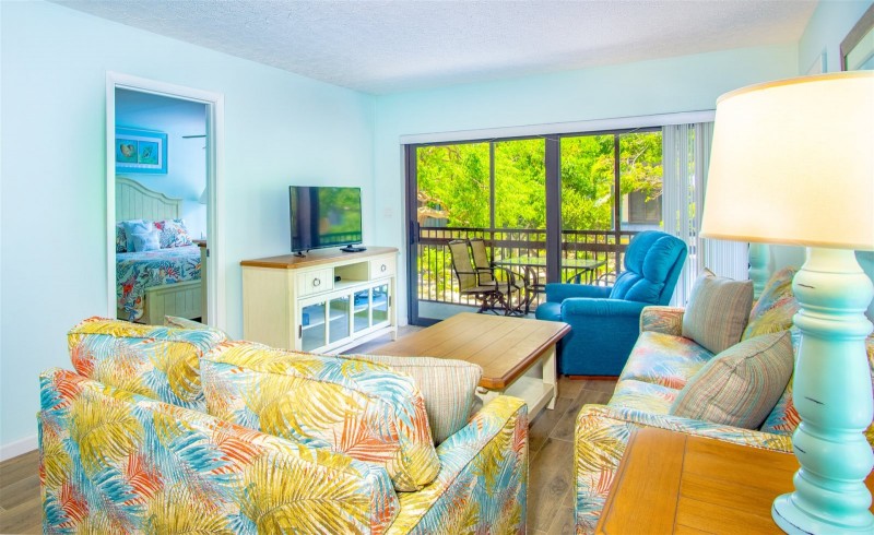 Marathon Key Beach Club units are 2 bedroom 2 bathroom rentals. The master bedroom has a king size bed, and a full bathroom with large tile shower. The second bedroom has two twin beds. Bed and bath linens are provided. There are two televisions in the unit, one is in the master bedroom, the other is in the living room with digital cable and free wireless internet. The units have central air conditioning.