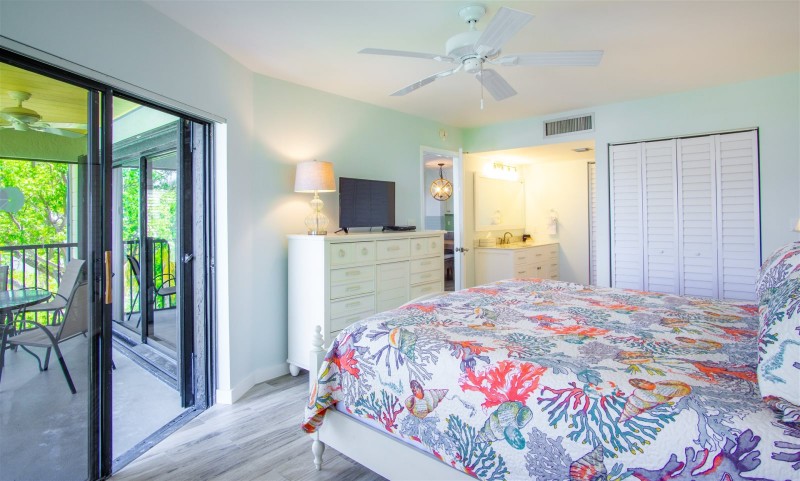 Marathon Key Beach Club units are 2 bedroom 2 bathroom rentals. The master bedroom has a king size bed, and a full bathroom with large tile shower. The second bedroom has two twin beds. Bed and bath linens are provided. There are two televisions in the unit, one is in the master bedroom, the other is in the living room with digital cable and free wireless internet. The units have central air conditioning.