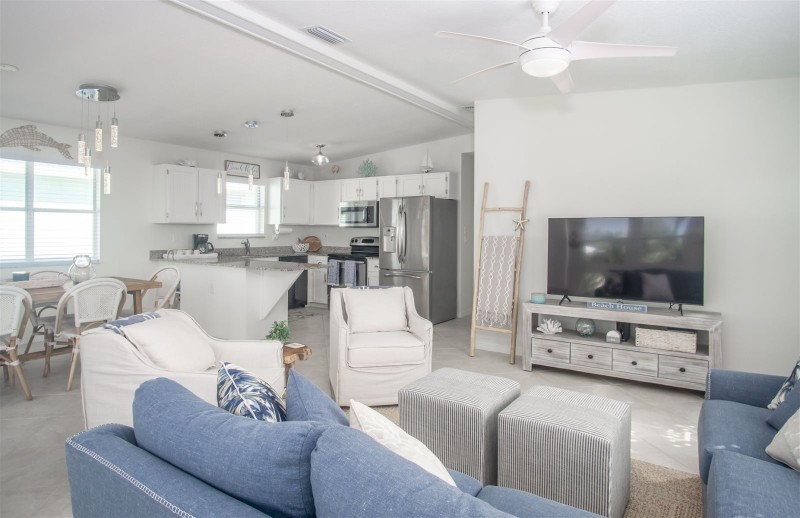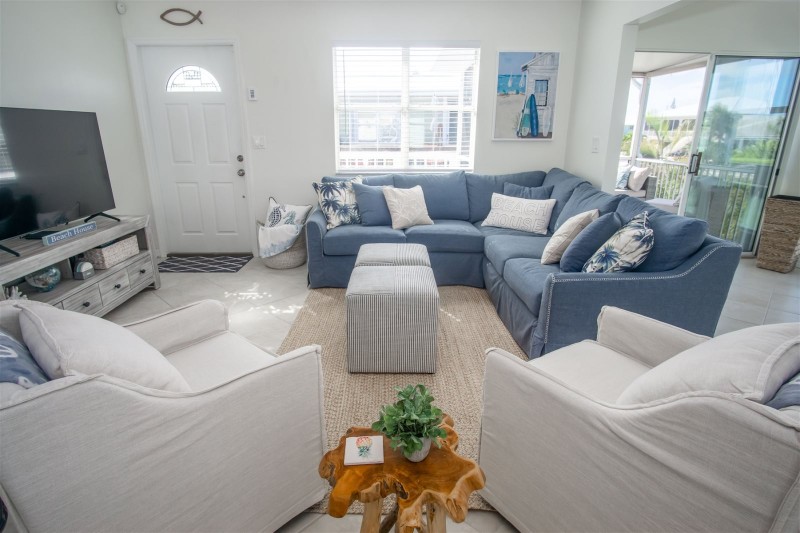 This home comes with a fully equipped kitchen to tend to all of your cooking needs. If you are looking for some relaxation indoors, enjoy the living room with the large flat screen TV. As you kick back and relax on couches you can enjoy the bountiful amount of natural lighting via the impact windows that over look the canal. This home also offers dining area in the kitchen plus outdoor seating on the screened in porch that overlooks the canal!