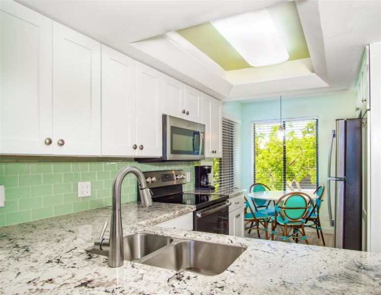 Screened porches are just outside the living room and have seating with a table. Enjoy your morning meals while watching the Florida Keys' wild birds in the beautiful landscaped native trees, bushes, and flowers.