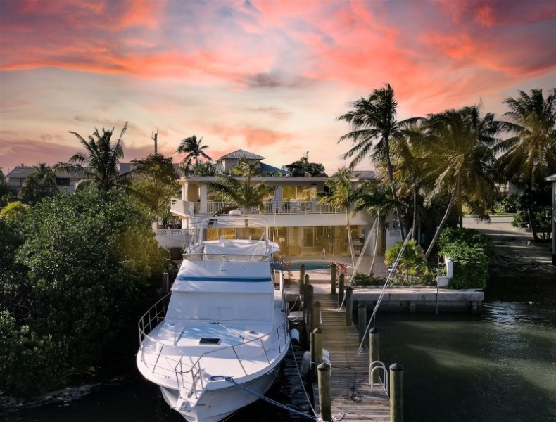 This beautiful and spacious home has Sombrero Beach at the end of the road. Ocean views and deep water dockage with boating access to the Atlantic Ocean. Two floors of living space. Spacious outdoor living with outdoor bar and extra refrigerator. Large Pool, Nice Dock with 4 foot draft. Completely renovated home with Open floor plans and spacious rooms.