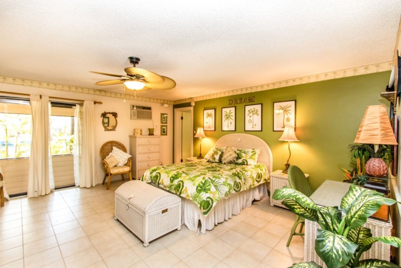 This condominium at The Reef in Marathon, Middle Keys is a true resort setting with a “home away from home” feel. This unit is fresh, and comfortable. It features 1 bedroom and 2 bathrooms. The one bedroom side has an open kitchen & living room floor plan. The bedroom consists of a king bed and on suite bath. There is a second bath off the kitchen when you first come in. Plus a sleeper sofa. The onsite pool is surrounded by comfortable chairs to lounge in and all guests are welcome to complimentary use of onsite bikes, kayaks, canoes and paddle boats for exploring. Plus there are tennis courts, laundry facility, shuffleboard, ping pong, and BBQ grills onsite to grill some freshly caught fish.