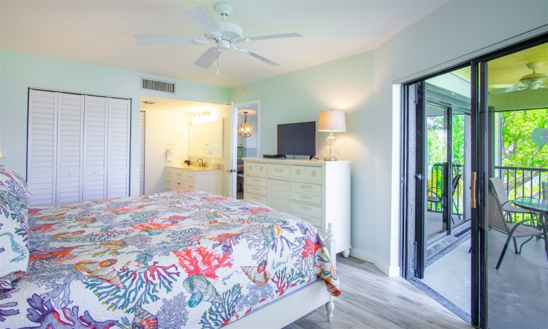 Marathon Key Beach Club units are 2 bedroom 2 bathroom rentals. The master bedroom has a king size bed, and a full bathroom with large tile shower. The second bedroom has two twin beds. Bed and bath linens are provided. There are two televisions in the unit, one is in the master bedroom, the other is in the living room with digital cable and free wireless internet. The units have central air conditioning.