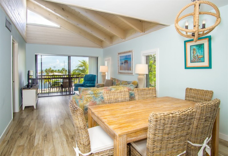 Marathon Key Beach Club units are 2 bedroom 2 bathroom rentals. The master bedroom has a king size bed, and a full bathroom with large tile shower. The second bedroom has two twin beds. Bed and bath linens are provided. There are two televisions in the unit, one is in the master bedroom, the other is in the living room with digital cable and free wireless internet. The units have central air conditioning.