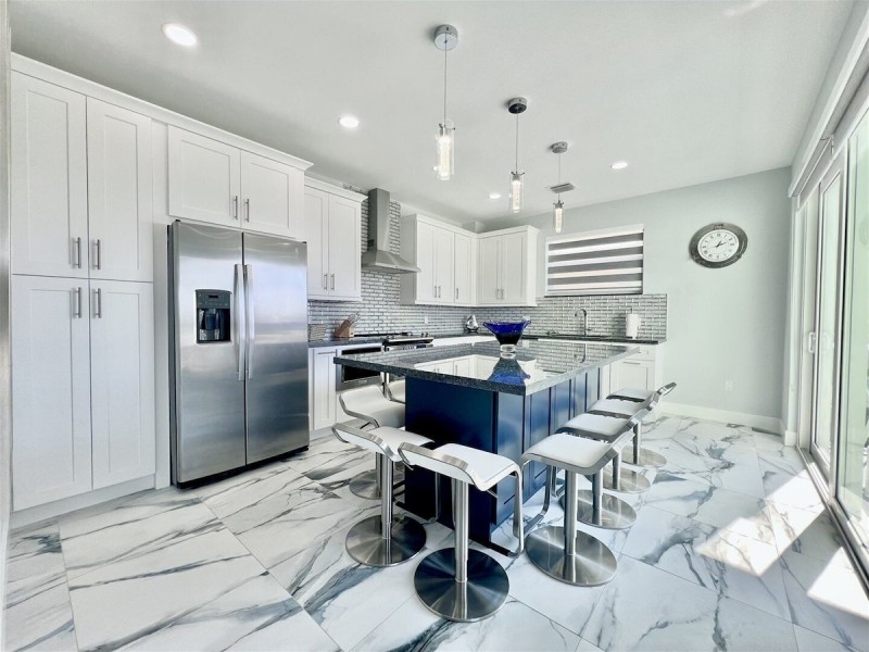 - **Fully Equipped Kitchen:** Featuring stainless steel appliances, a counter island with seating for 8, and an open layout that flows seamlessly into the living room.
