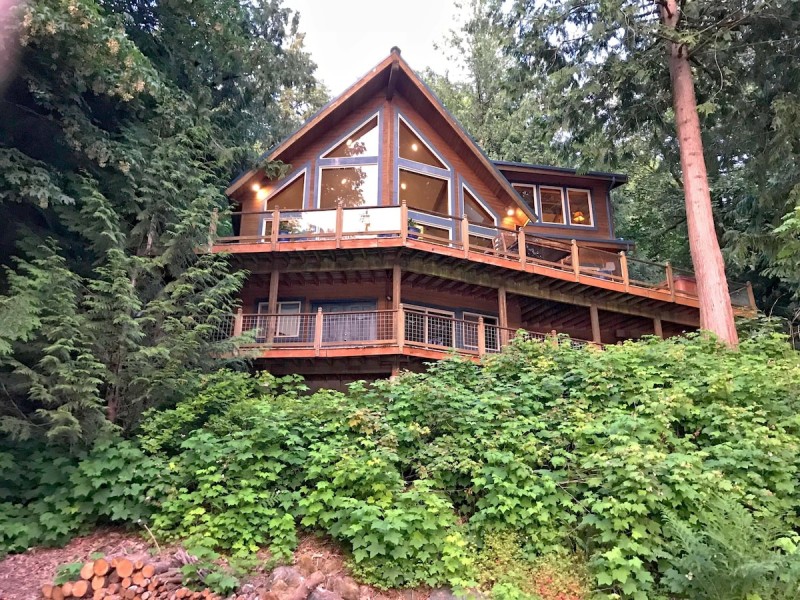 Play at the lake or enjoy the mountains at this gorgeous 2-story, 3-bedroom, 2.5-bath cedar chalet featuring a lakeside deck and spectacular views of Silver Lake. Recent improvements inside and out make for an even more enjoyable family experience. The interior floor plan features a half bath, a fully equipped gourmet kitchen, a large living/dining area with new flooring, new leather seating, a wood-burning fireplace (firewood provided), and cathedral ceilings with expansive window areas. The main bedroom features a private entrance, a 1-king bed, a freestanding gas fireplace, and a 3/4-bath en-suite. The second floor features one bedroom with a 1-king-sized bed and 1-queen-sized bed, another with a 1-king-sized bed, and an adjoining 3/4-bath. The exterior features a carport and a large wraparound deck with a gas grill and a private outdoor hot tub. A pathway with steps leads to a cleared sitting area and onto a floating deck at the water’s edge. Everything needed to complete a relaxing day on the lake. Don’t forget Fido! This pet-friendly (2-PET MAXIMUM, No Exceptions) and monitored family vacation property offers breathtaking views and will sleep 8-persons (ENFORCED Maximum Occupancy).