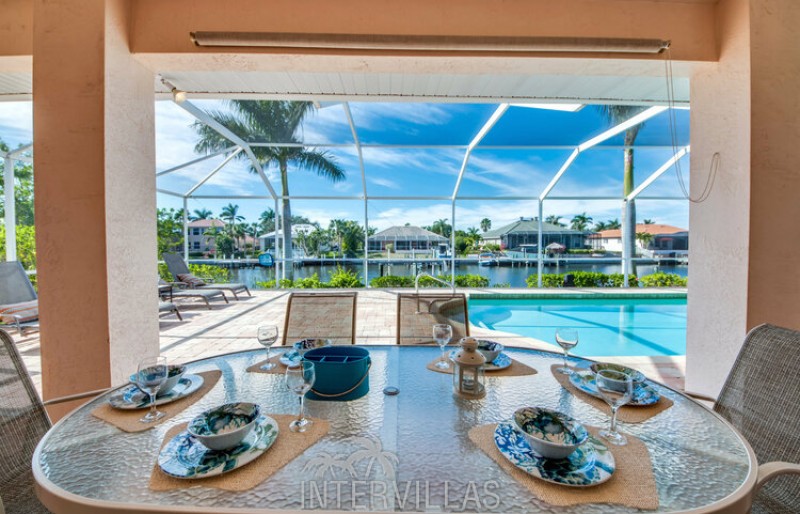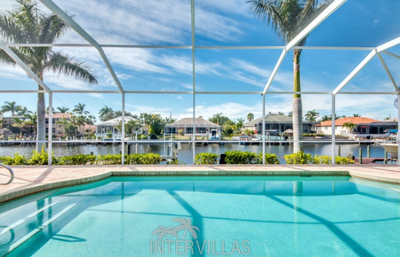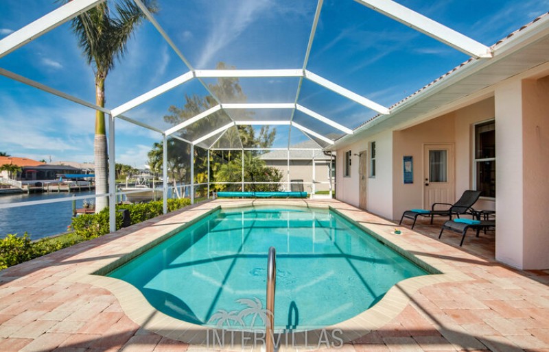 Villa Sundown invites you to relax in the typical Floridafeeling, close by to publix, walmarts, shoppings and restaurants. Spacious poolarea, 32x16ft large pool with west exposure. The poolcage has been removed and a panorama cage was installed in 2019. You can enjoy the great view on to the 150” wide canal perfectly.
