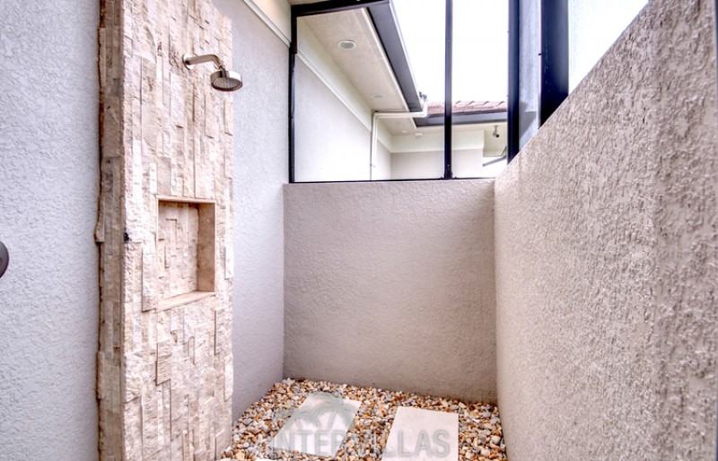 6 bedrooms for up to 12 people. One of which is a children bedroom with two double-beds and a shared access to the Master-bathroom 2. A total of 5 bathrooms, 4 bahtubs, two outdoor showers in the Masterbathrooms, one poolshower and two powder-guest toilets.