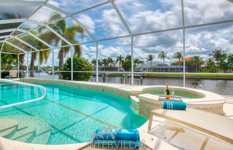 Spacious Lanai with a huge pool (13.5m long) with separate Jacuzzi. Relax on one of the comfortable sun loungers, cool down in the pool or enjoy the moment at the 45m long waterfront. Watch the fishes swim by and maybe even a manatee? The pool is heated solar as well as electrical.