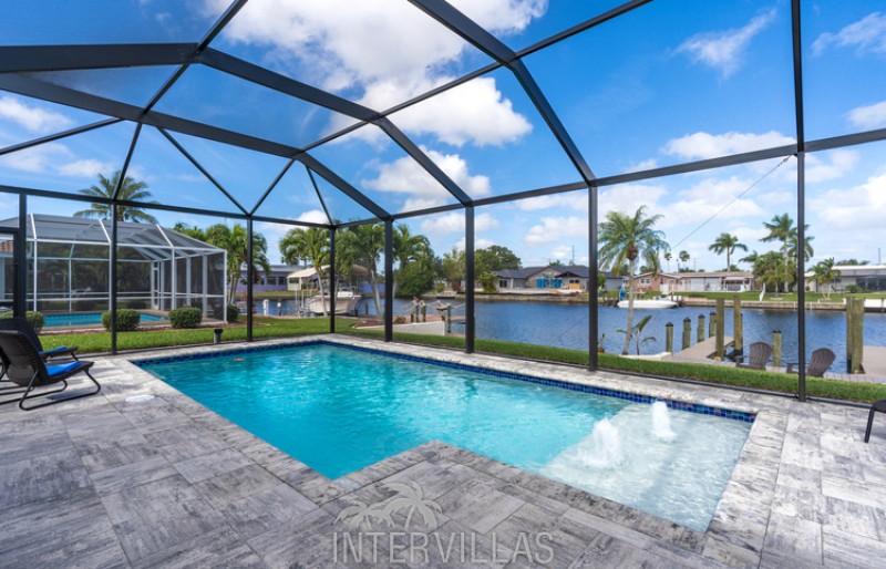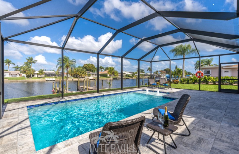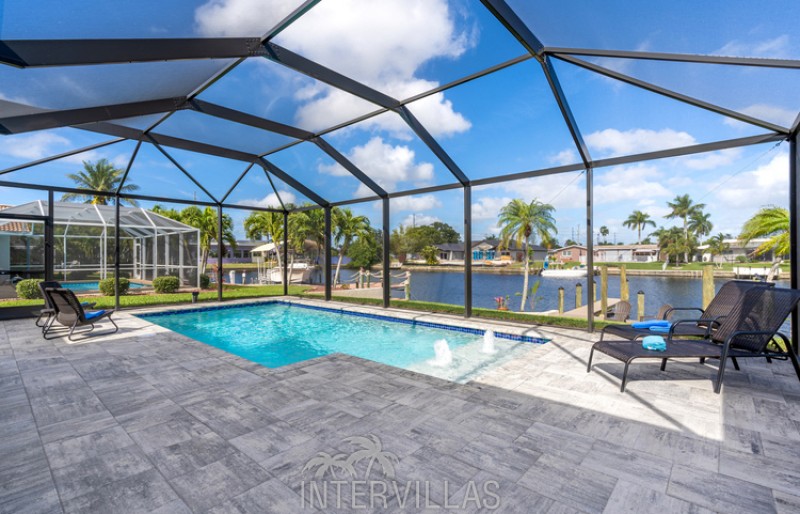 The generous Lanai has been built 2019 and offers a great, electrically heatable pool (33x14ft). The covered Lanai welcomes everybody to sit, relax, enjoy and play. Enjoy the wonderful view over the pool and the canal while having your perfect, juicy American steak getting ready on the grill. Absolute highlight of the pool is the 1ft deep low water zone with jets, that make the zone a small jacuzzi. Popular with big and small guest.