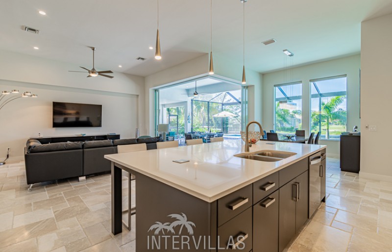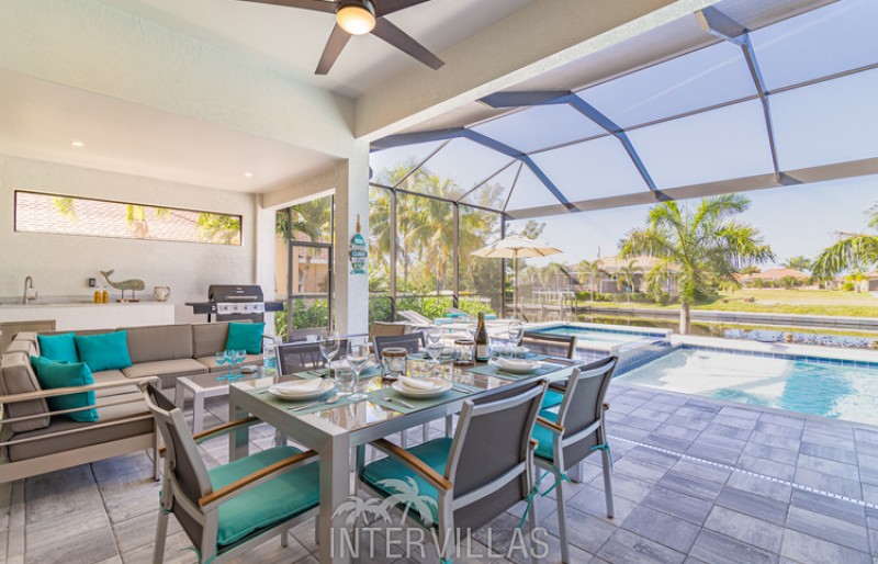 The west facing house guarantees optimal sunlight, impressive sunsets and, of course, a wonderful holiday tan. You will remember evenings spent with a glass of wine or a delicious barbecue on the patio for a long time! The southwest of Cape Coral is one of the most popular regions in Florida.
